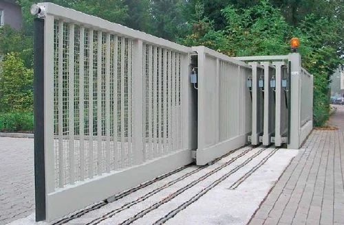Gates are equipped with electric or hydraulic motors that automate movement.